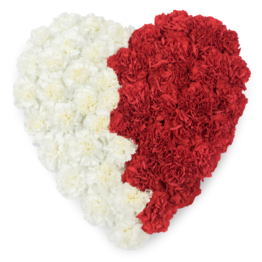 Presenting our Charming Carnations Heart bouquet, crafted with love by Handy Flowers. This delightful arrangement features a blend of white and red carnations, creating a harmonious and elegant display suitable for expressing sympathy or as a heartfelt gift.