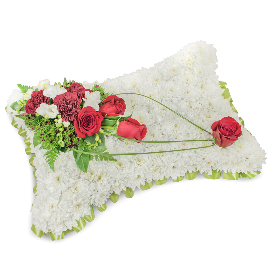 - Elegant Color Scheme: A harmonious mix of white and red flowers symbolizes love and remembrance.